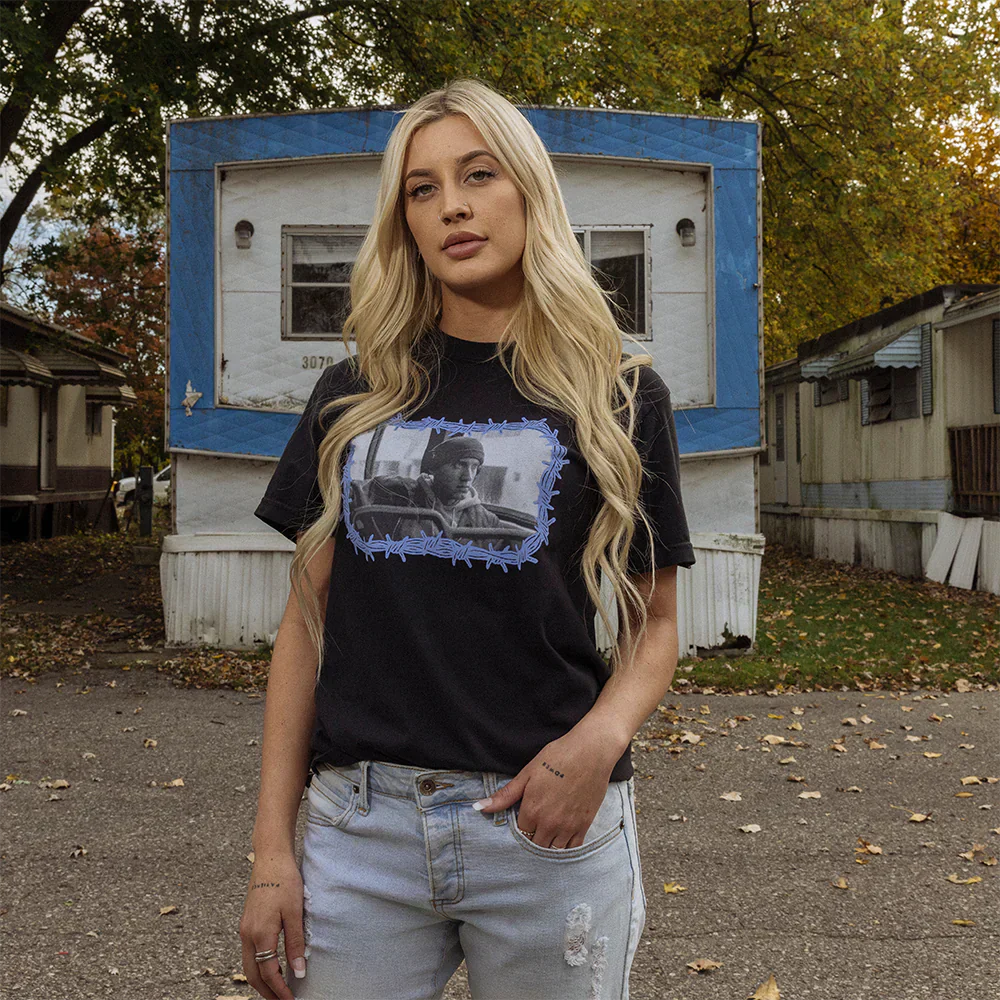 Features a barbed wire graphic inspired by 8 Mile
